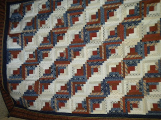 Rena brought in her log cabin quilt and pieced backing to have us sandwich it for her. We discussed how it should be quilted and it was hard to decide. It's so beautiful that she's keeping this one. This can really be called a reversable quilt.